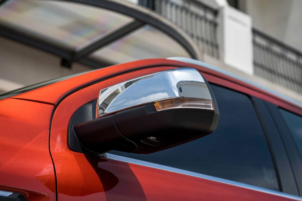Kính chiếu hậu trên bản Titanium cũng được mạ chrome sáng bóng, tăng thêm vẻ cứng cáp cho phần thân. Gương được tích hợp đầy đủ các tính năng gập/chỉnh điện, đèn xi-nhan tạo thuận tiện cho người cầm lái. Đáng chú ý là kính chiếu hậu to bản mang đến tầm nhìn rất tốt, cho cảm giác rất thích mắt khi lái dù có tính năng cảnh báo điểm mù hỗ trợ.