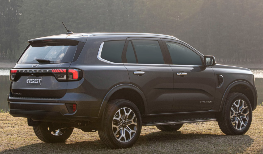 Bước ra phía sau, đuôi xe đã được thiết kế hoàn toàn mới bản cũ với cụm đèn hậu LED 2 bên được nối liền với nhau bằng thanh ngang to bản in dập nổi tên xe “EVEREST”. Bộ phận cản sau cũng được thiết kế tương tự như cản trước, trong khi đó đèn phụ được hạ thấp và nằm sâu bên trong hốc đèn.
