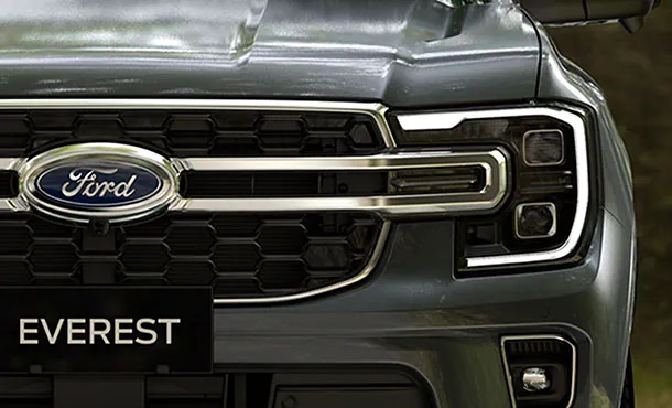 Dễ dàng nhận diện với cụm đèn pha được thiết kế hình chữ C đặc trưng của Ford, bao quanh tấm lưới tản nhiệt trên xe Everest. Tất cả tạo nên một thiết kế hài hòa, tương xứng với sức mạnh của chiếc xe.