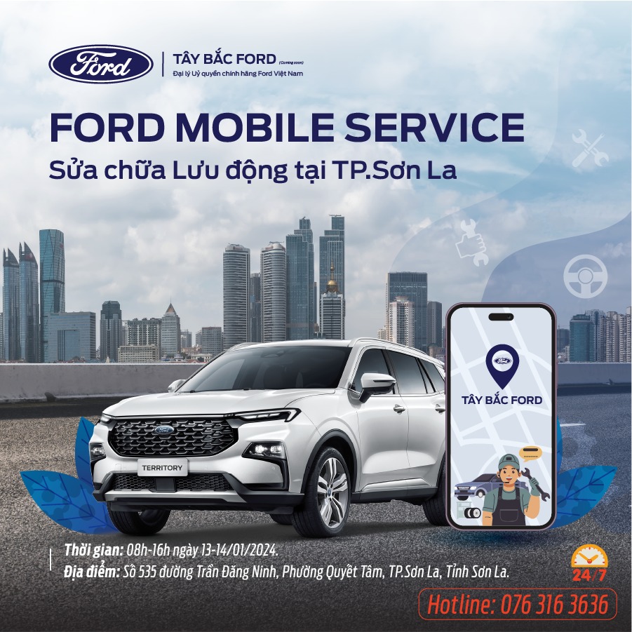 Ngày 13-14/01 này, Chương trình Mobile Service của Tây Bắc Ford sẽ dừng chân tại Thành phố Sơn La với nhiều ưu đãi hấp dẫn: